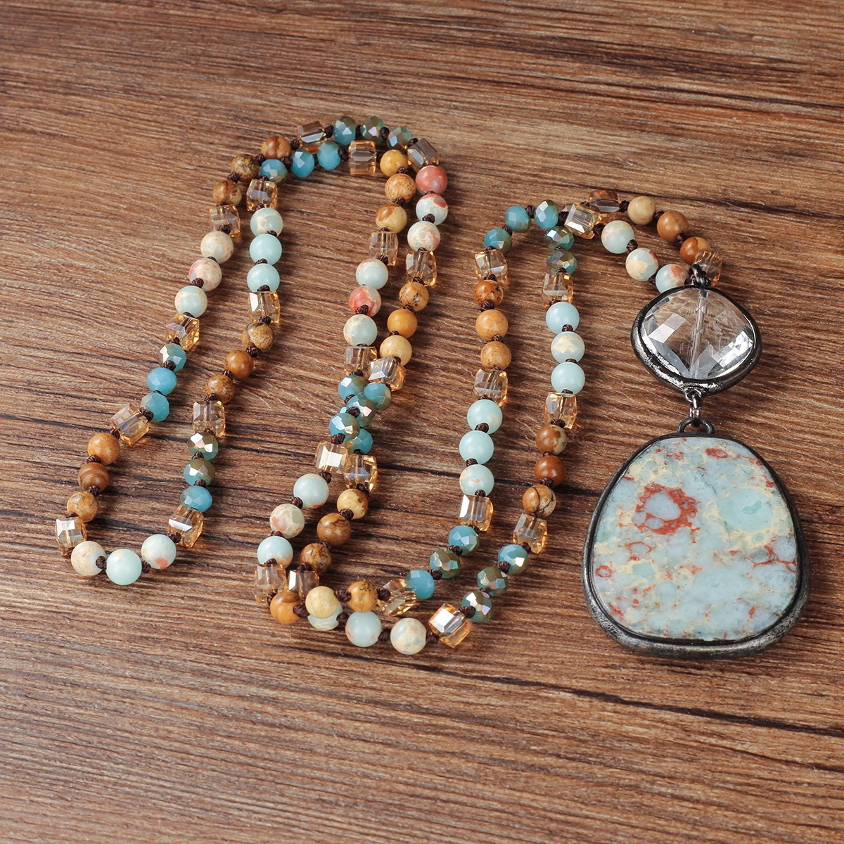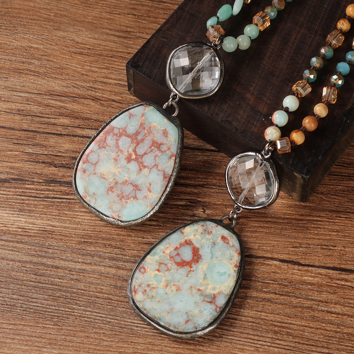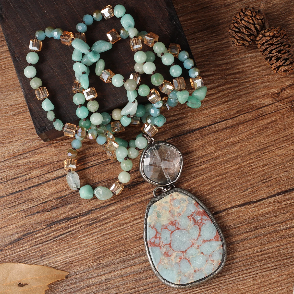 O Colar Elegância Natural combina o toque rústico das pedras naturais com o refinamento do design vintage.
