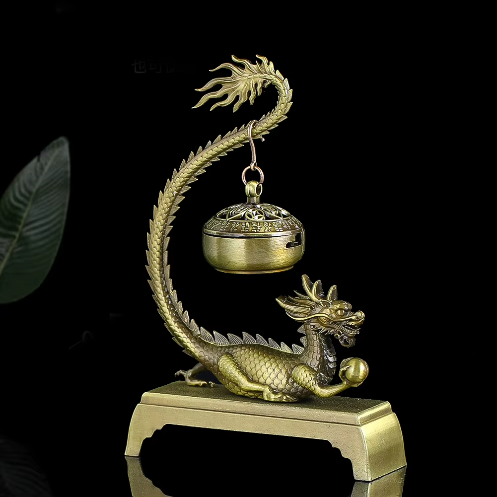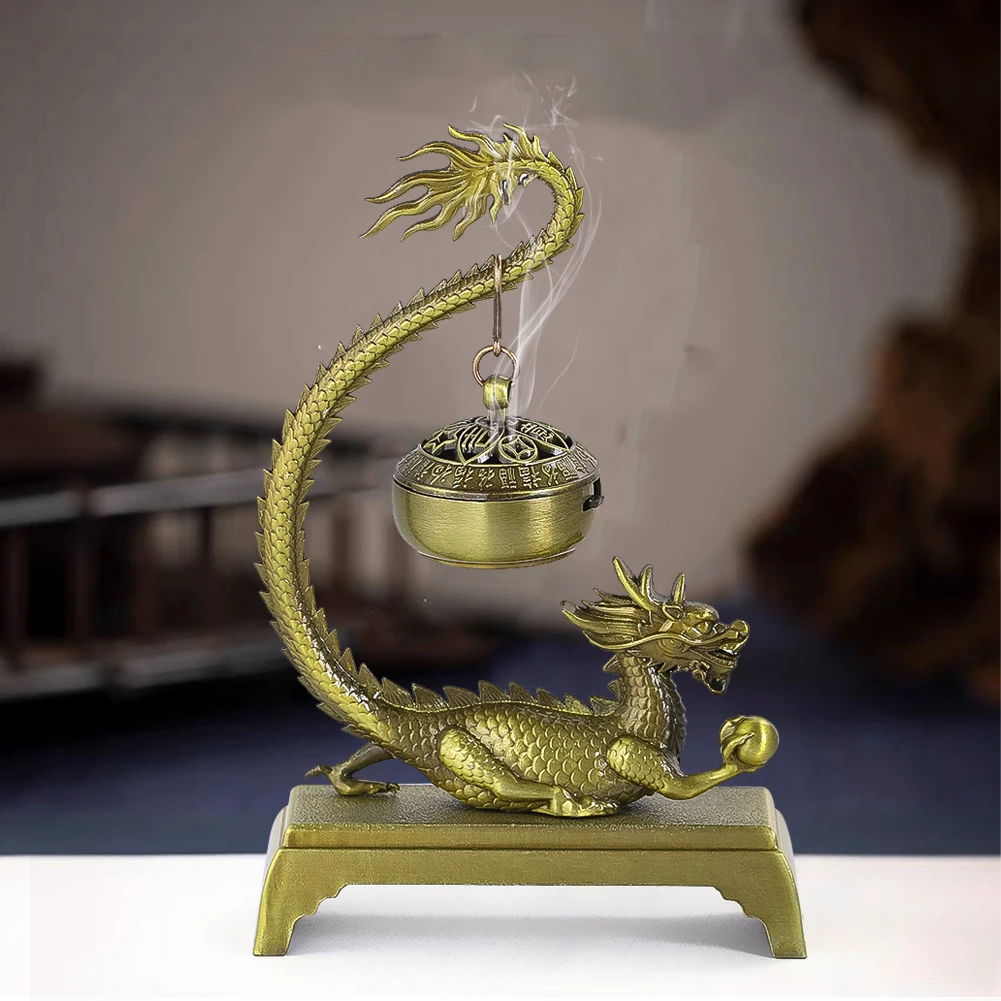 Ao acender um cone ou disco de incenso, a fumaça se eleva como uma oferenda, deslizando entre as curvas do dragão — criando um espetáculo visual que acalma, inspira e purifica.