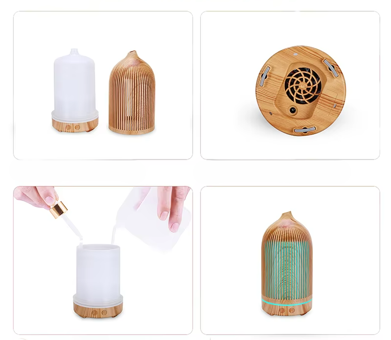 Funções: Difusor de óleo essencial, mini umidificador, luz noturna LED multicolorida
