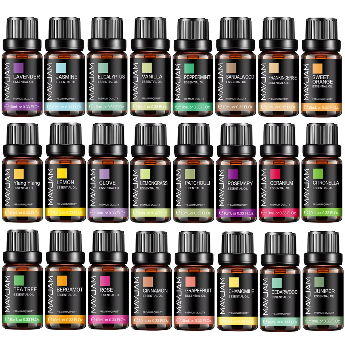 Esta coleção magistral reúne 37 óleos essenciais puros, selecionados por suas propriedades terapêuticas e seus efeitos sutis sobre mente, corpo e espírito: