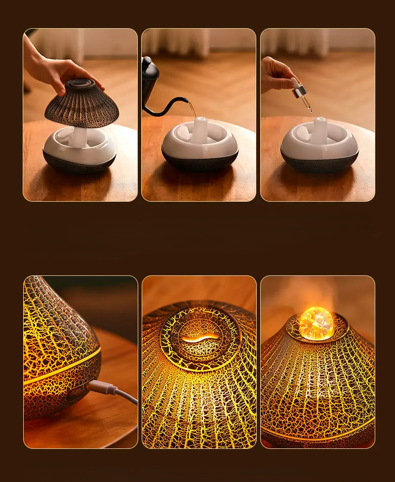 O HamaMu Volcanic Aura Crackle nasceu da força primordial do fogo vulcânico — uma tecnologia ancestral reinventada para nutrir sua casa com aromas terapêuticos, umidade equilibrada e luz suave que pulsa como um coração de lava em calmaria.